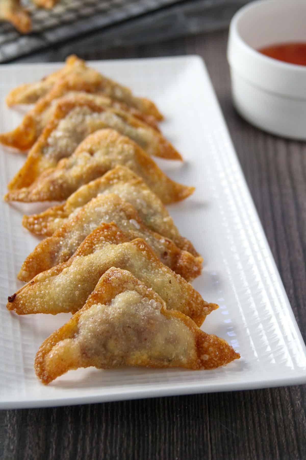 - These fried wontons are traditionally folded in simple triangle shapes, but you can use any dumpling fold technique you like.