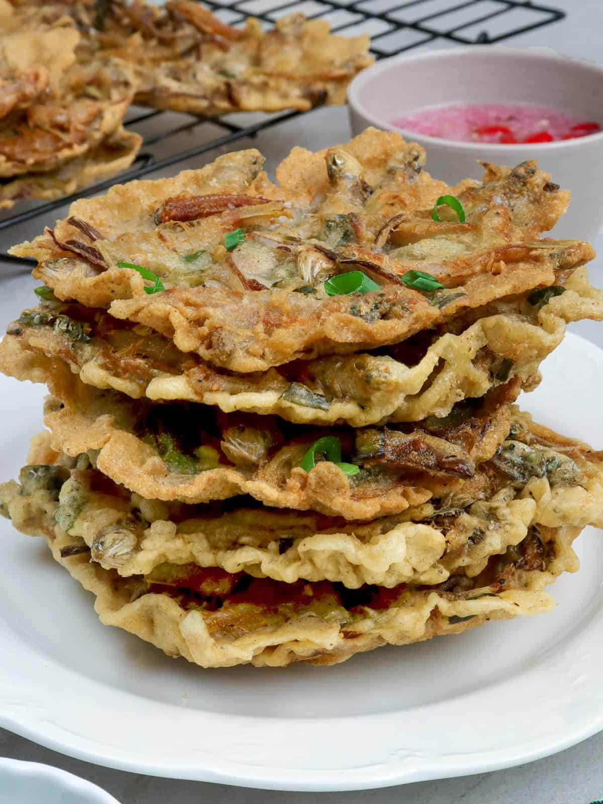 Ukoy na Dilis is a delicious fish fritter made with fresh anchovies. Crunchy and flavorful, they're wonderful as an appetizer or main dish.