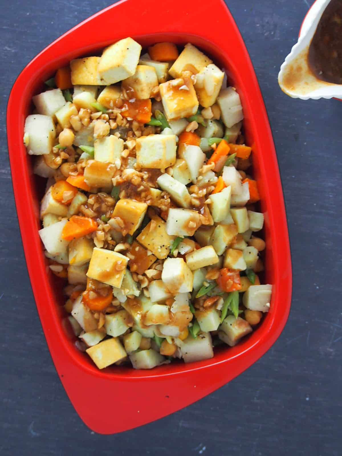 With a colorful medley of vegetables, tofu, and a garlicky peanut sauce, lumpiang hubad makes a delicious and nutritious midday snack, side dish, or main meal. It's great for simple family dinners or special gatherings.
