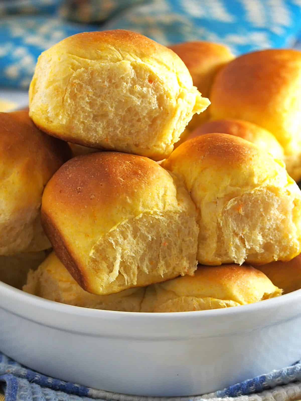 Sweet Potato Dinner Rolls are light and fluffy and filled with sweet potato color and flavor. They're the perfect addition to any Fall or holiday menu!