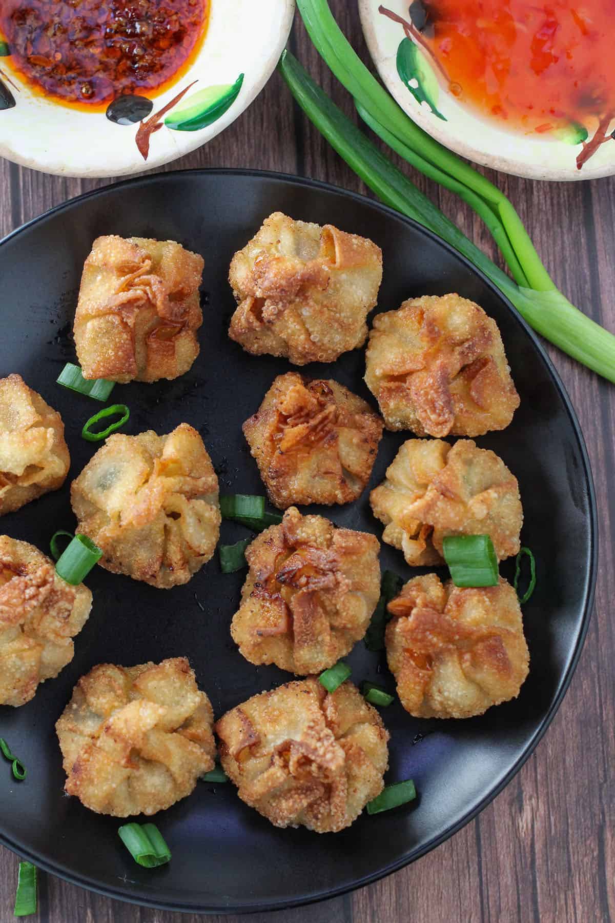 - Fried wontons are delicious as an appetizer, snack, or main dish. For an extra kick of flavor, serve with sweet and sour sauce or ketchup.