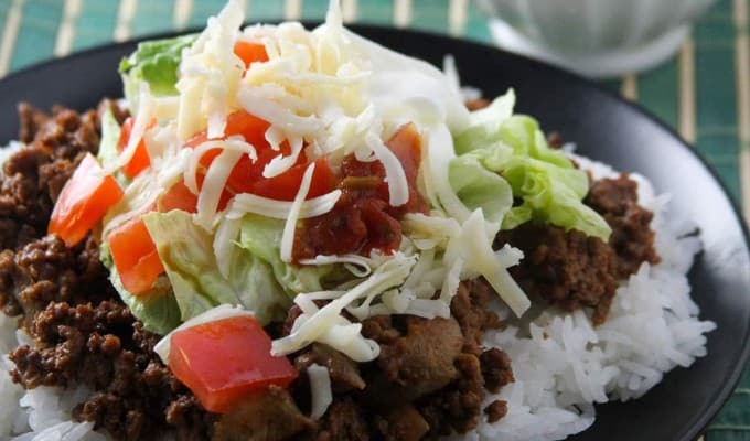 Level up taco night with this delicious Mexican-Japanese fusion with choice taco fillings piled over a bed of white rice. Taco Rice is ready in 30 minutes and makes a satisfying one-bowl lunch or dinner meal.