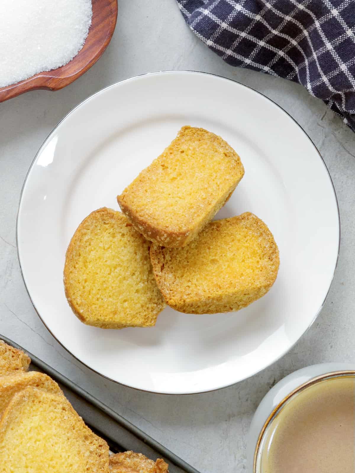 Low and slow is the key here; please do not rush the bake time by increasing the temperature, as the bread slices might brown too much before they're sufficiently dried out.