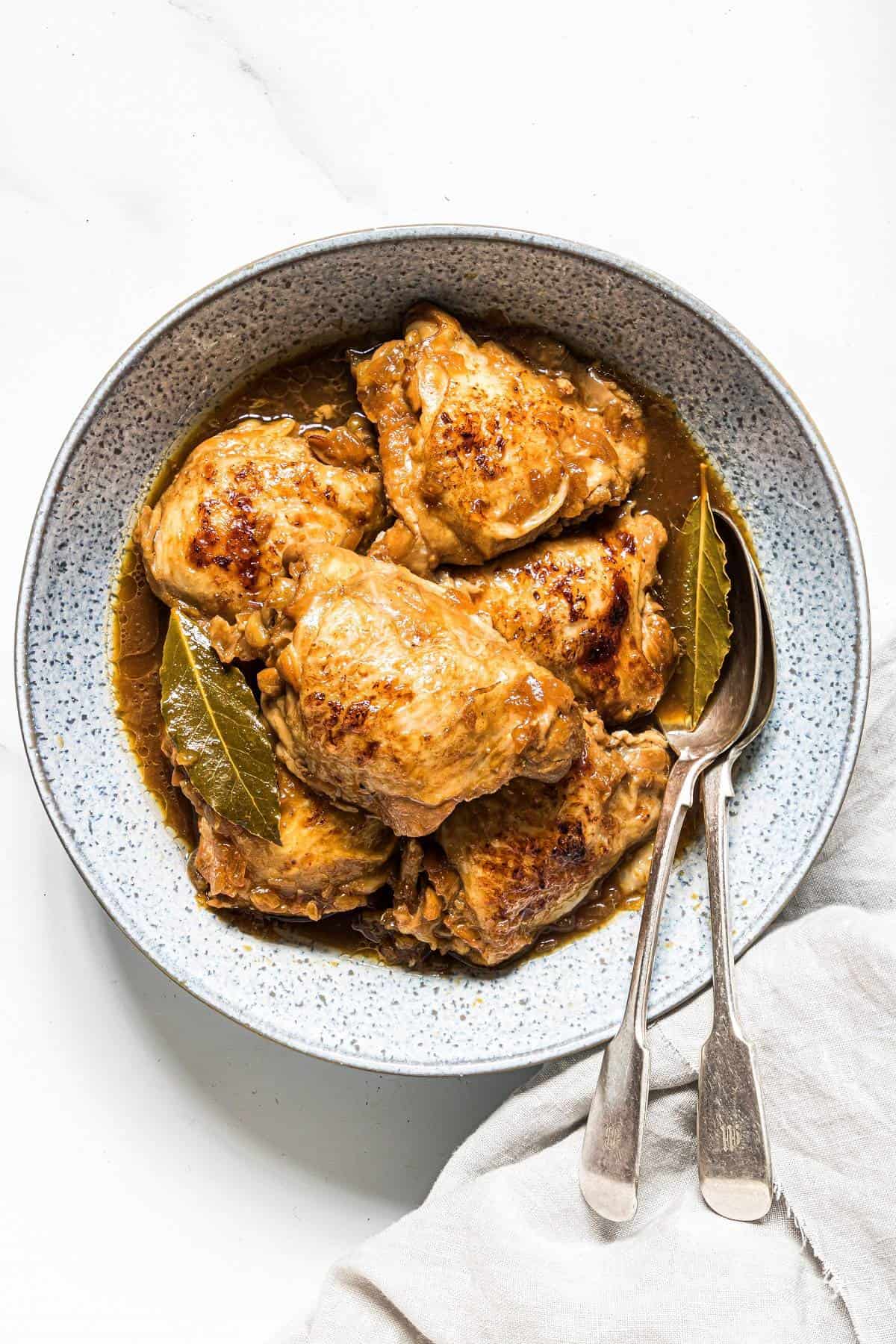 - Vinegar- while distilled white, apple cider, or rice vinegar will work in a pinch, sugarcane vinegar yields a mellow and more authentic adobo taste