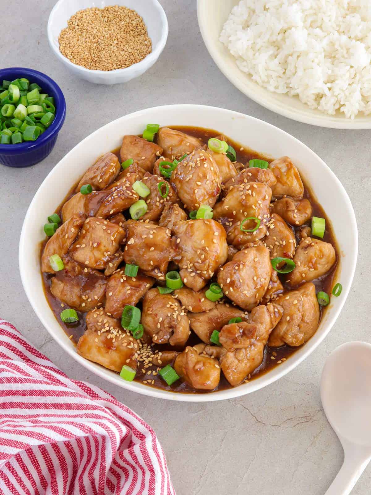 Looking for a healthier Asian dinner option? This easy Sesame Chicken recipe is made without breading or deep frying yet is full of zesty flavor that the whole family will love.