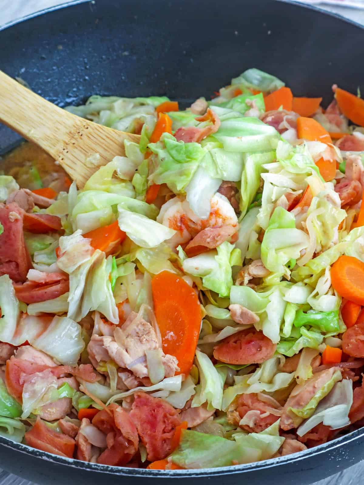 On one of the times I was revamping old content, the idea for this ginisang repolyo recipe came to me. I was cooking my pancit bihon guisado to re-shoot it when I realized the meat and veggie sahog could be a meal itself!