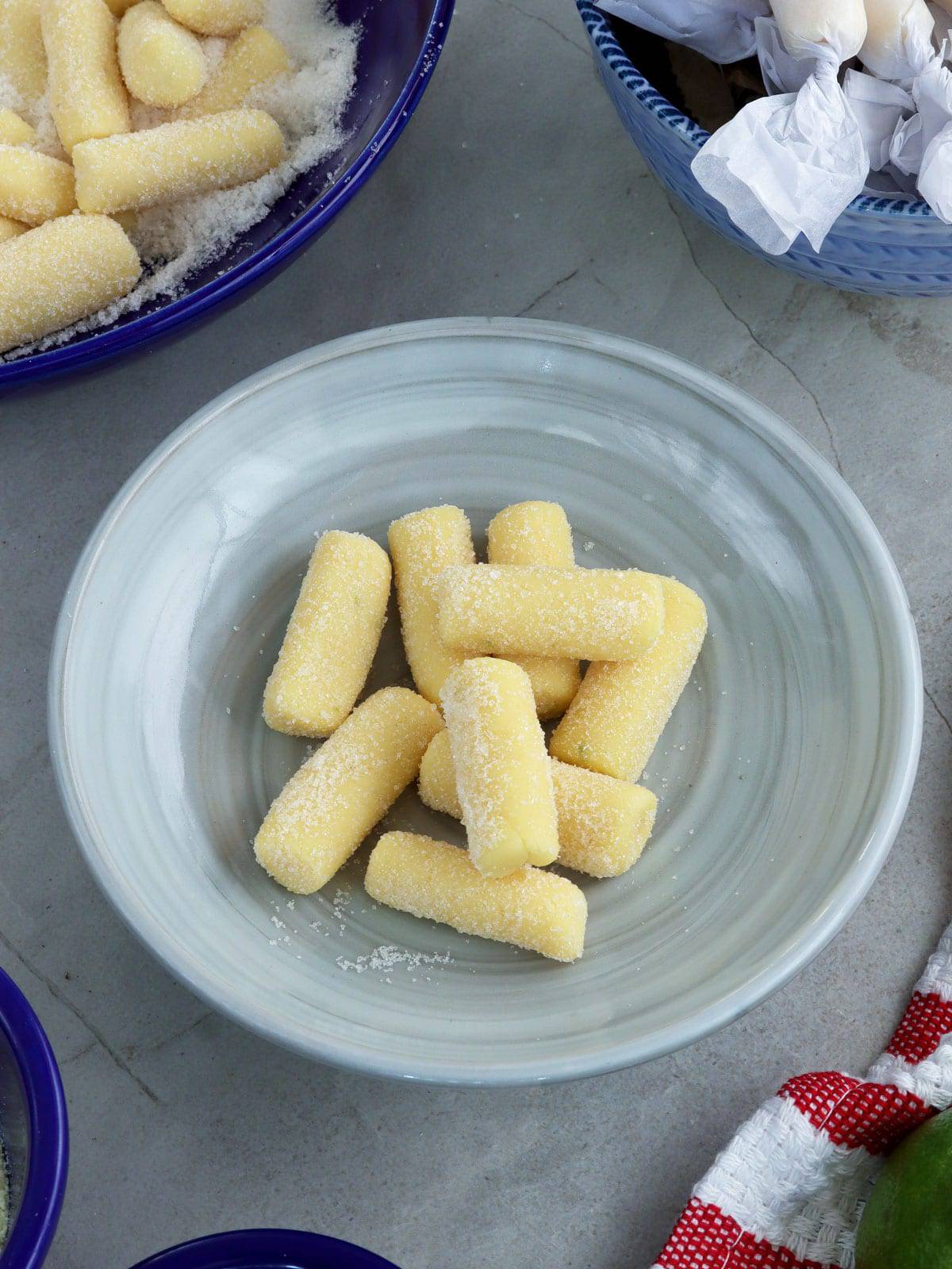 - Roll pastillas in the remaining ⅓ cup sugar until fully coated.